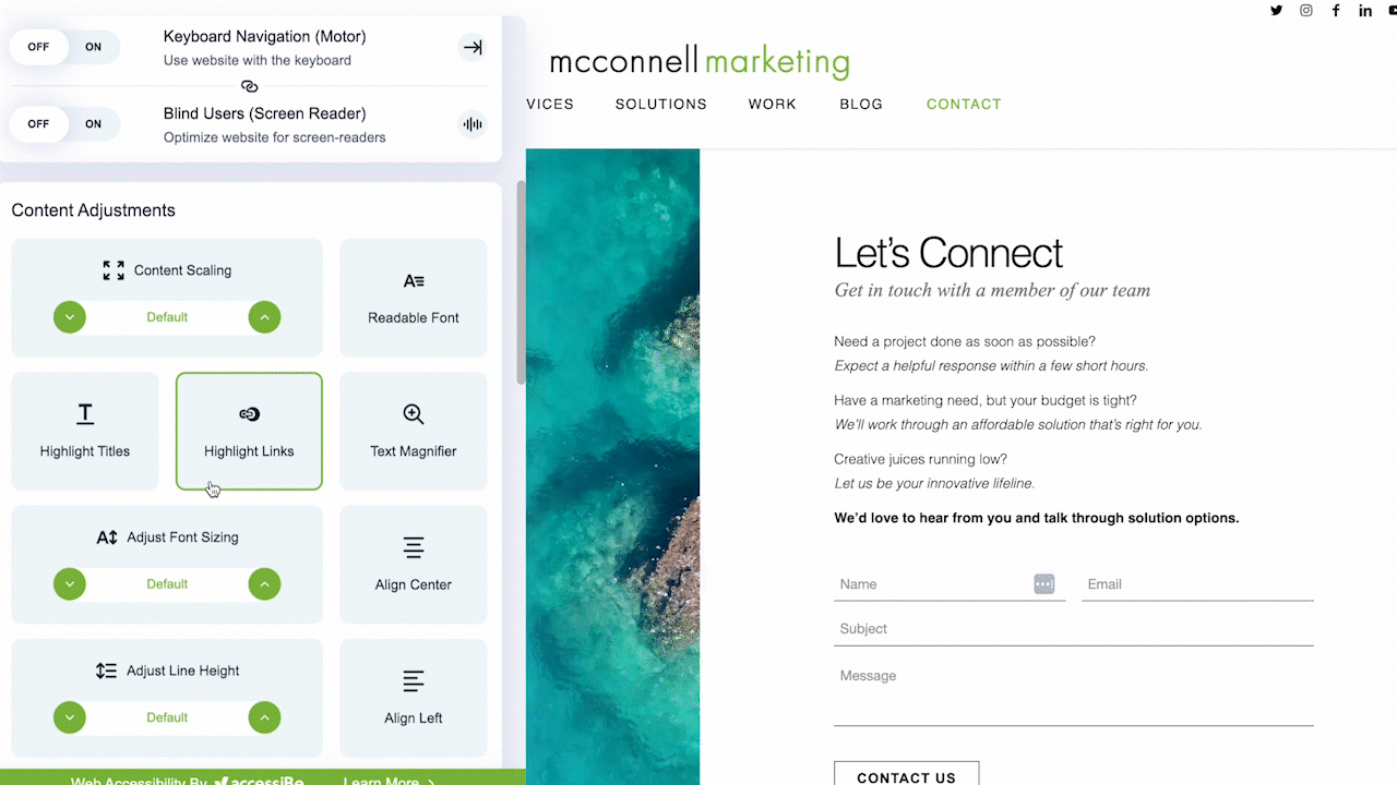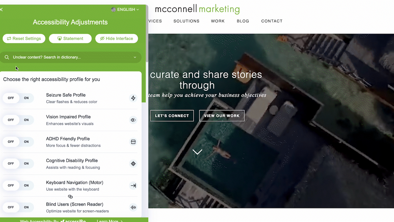 We equip your site with a plugin that guarantees accessibility along with helpful features for people with disabilities.