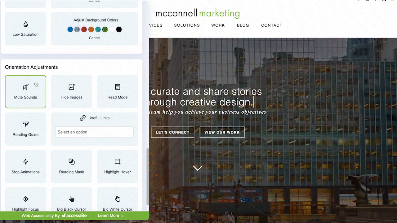 ADA Accessibility Adjustment Options Panel includes:
